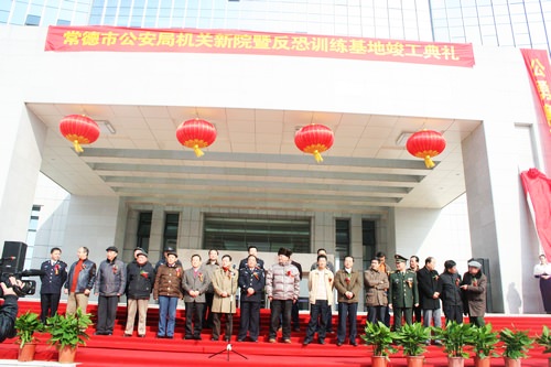 2010年上午10點58分,常德市公安局機關(guān)新院暨反恐訓(xùn)練基地竣工儀式在新大樓前坪準(zhǔn)時拉開序幕。中*共湖南省委委員、省公安廳黨委副書記、常務(wù)副廳長唐中元,中*共常德市委副書記、市長陳文浩,中*共常德市委副書記曹儒國,常德市人大常委會主任劉本之,常德市政協(xié)主席劉春林,市委常委、市政法委書記胡宗清,市委常委歐運崇,市委常委、常務(wù)副市長劉小明,市委常委、副市長宋冬春,市委常委、市軍分區(qū)司令員董正武,市委常委、市統(tǒng)戰(zhàn)部部長李愛國等領(lǐng)導(dǎo)以及公司董事長張照耀先生出席了儀式。